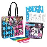 - Includes Monster High shoulder tote, spiral-bound Monster High sketch portfolio with plastic cover, 40 Monster High formatted sketch pages, 10 markers, 5 removable plastic stencil sheets with 190 stencil designs, 155 foil stickers and instructions